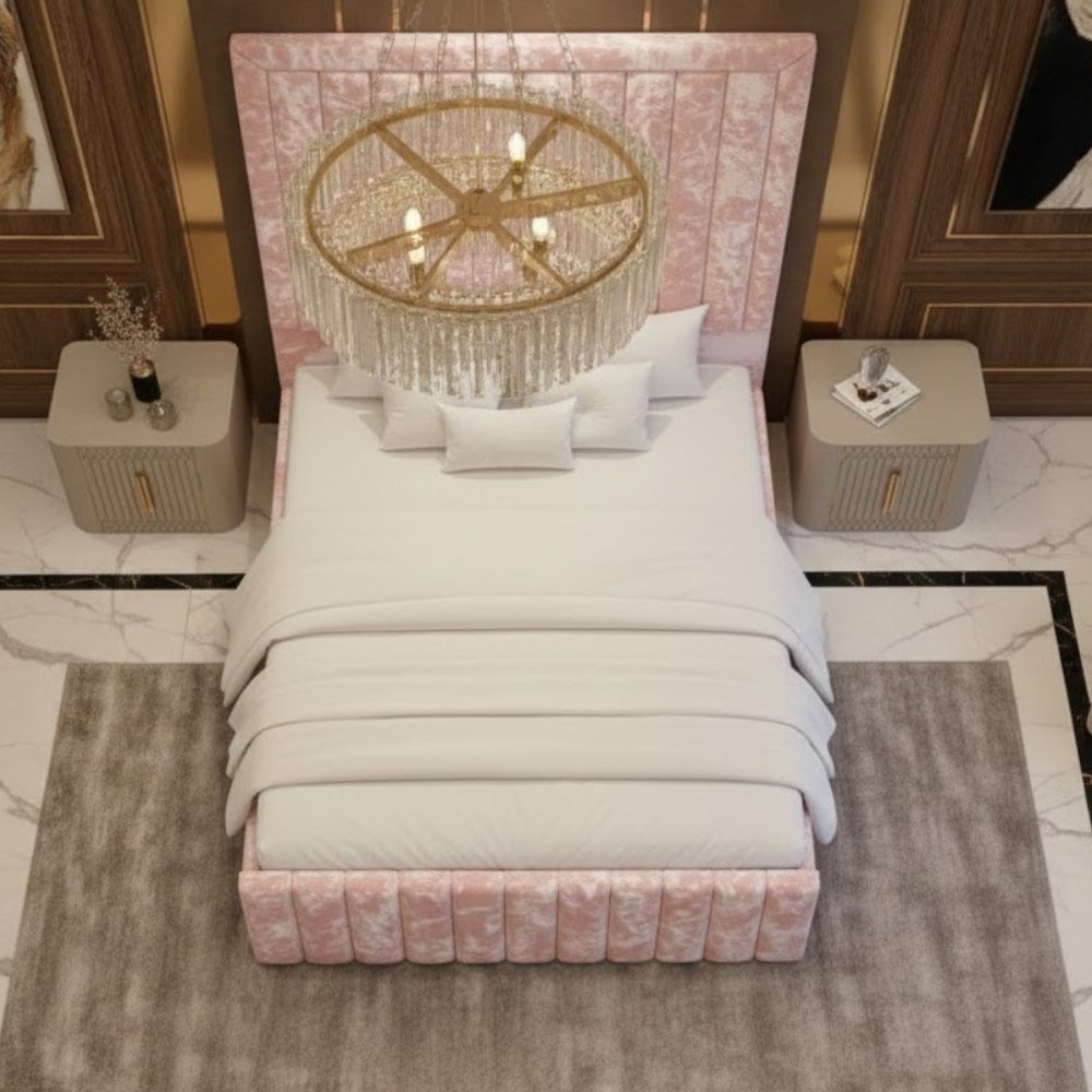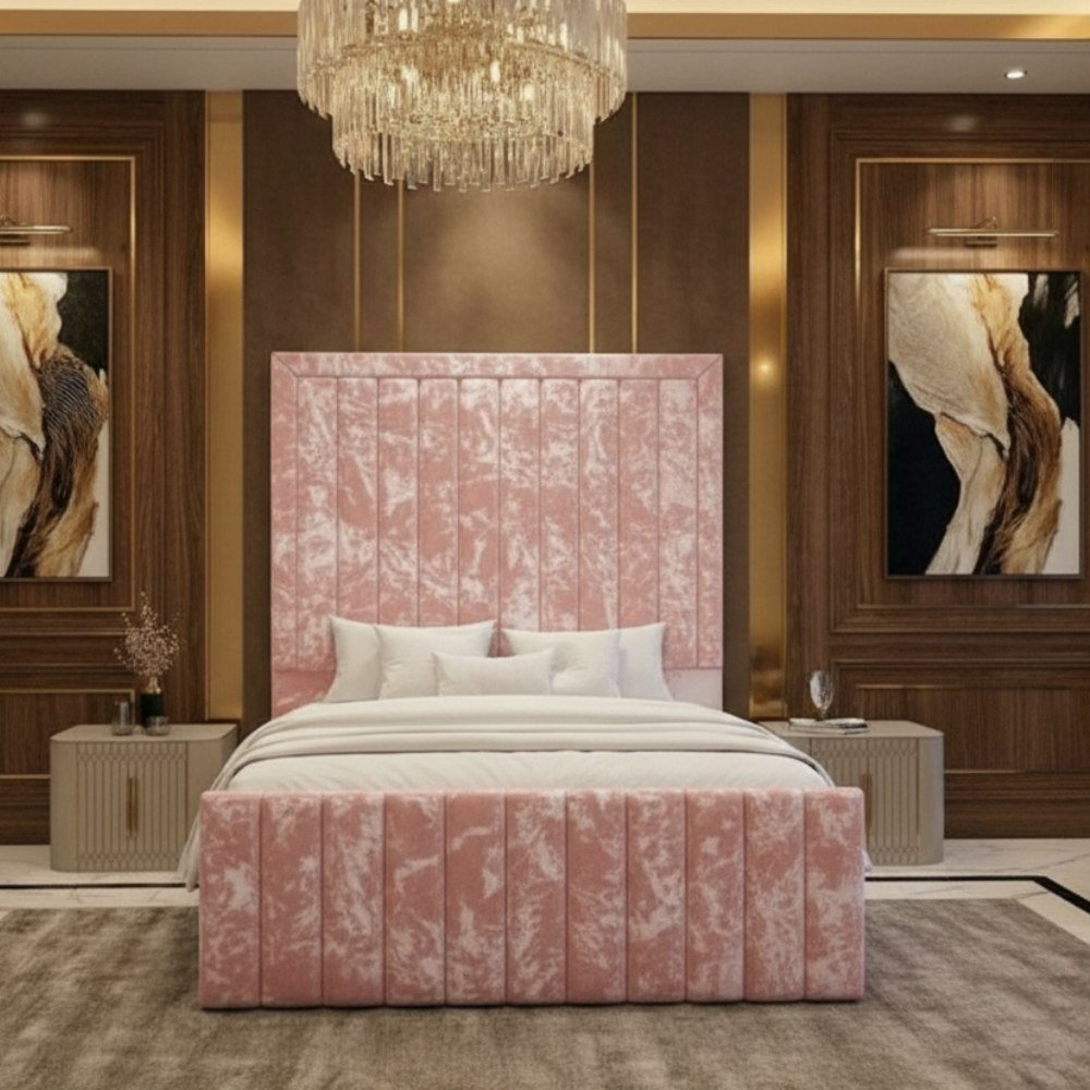 Orion Signature Bed– Luxury High Headboard Fabric Bed for Modern Bedrooms